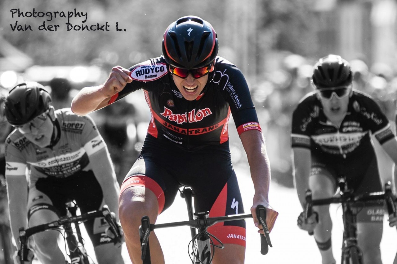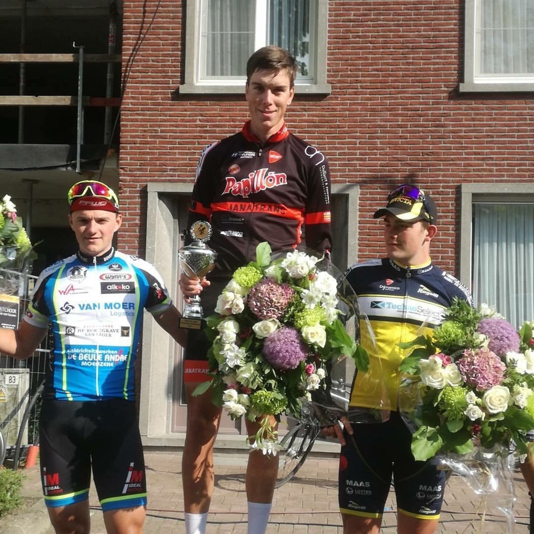 Tim Bierkens heeft zondag de U19 UCI 1.1 wedstrijd de Omloop der Vlaamse Gewesten gewonnen. In de slotkilometer verschalkte hij zijn medevluchters. Een straffe teamprestatie waar ook Kevin (13e), Geert (34e), Conor, Pepijn en Tibo in mochten delen.