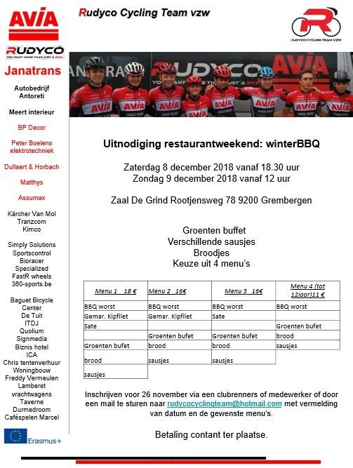 Het U17 team van Avia-Rudyco-Janatrans Cycling Team is klaar voor 2019. Na een succesvol 2018 bij onze nieuwelingen, met enkele mooie zeges en ereplaatsen in interclubs en interclubklassementen, staat het team 2019 in de steigers.