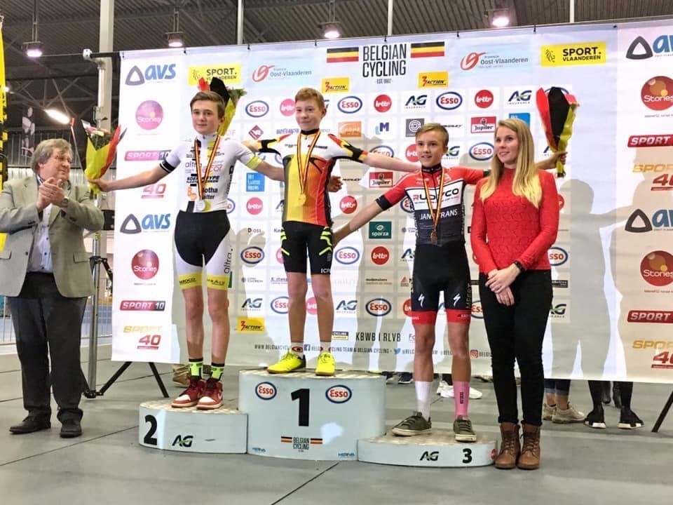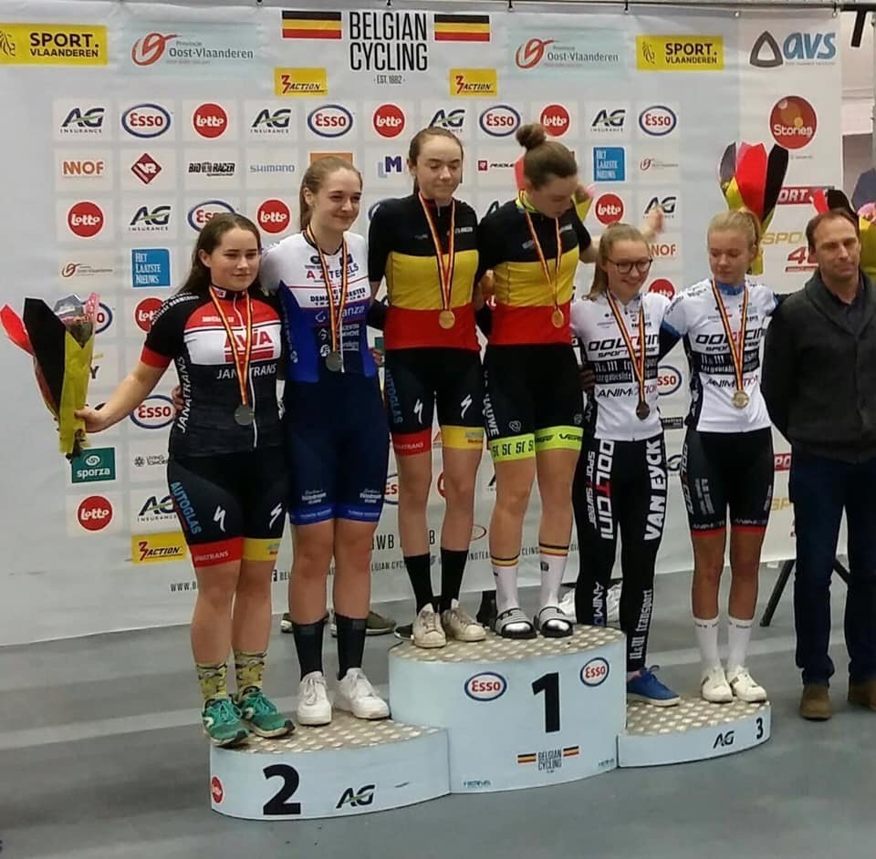 In de achtervolging 2 km werden onze clubrensters Gemke 9de, Kirin 6de en Sara mocht de kleine finale voor het brons rijden. Ze greep net naast brons. In het BK ploegkoers reden de jongens nieuwelingen, dames nieuwelingen en dames junioren tesamen. Voor de dames was er slechts één trui. Yorick en partner veroverden zilver bij de jongens. Aaike en partner werden tweede bij de dames en eerste nieuwelinge meisjes doch zonder trui. Die trui ging wel naar de club want Kirin tesamen met topsportschool partner behaalden goud. Proficiat ! Het is de eerste medaille van het seizoen en ineens goud, super !.