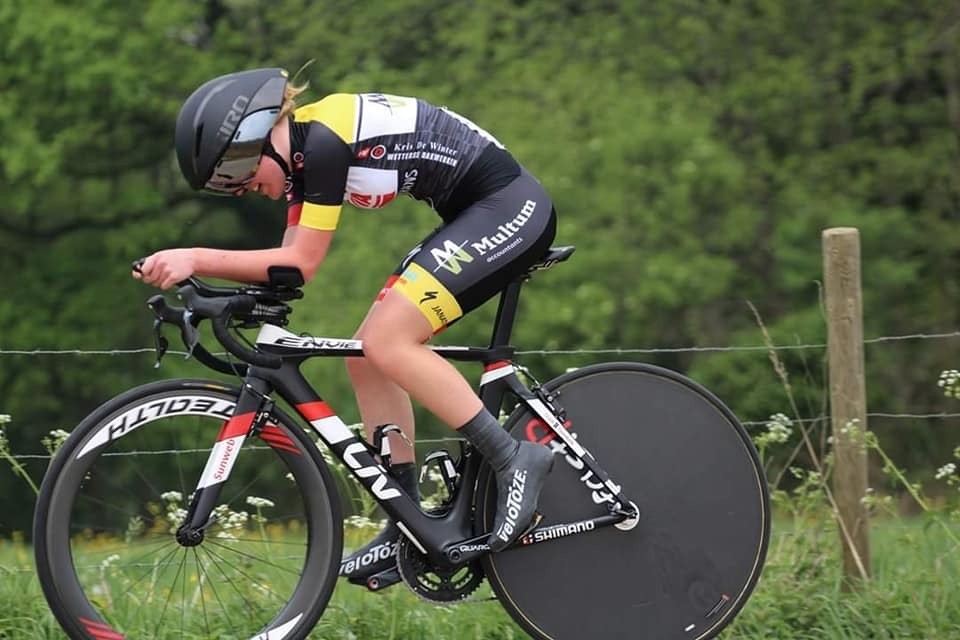 1 mei was opnieuw een topdag voor de club. Op het Belgisch kampioenschap tijdrijden in Sint-Lievens-Houtem werd Yoran Van Gucht Belgisch kampioen bij de eerstejaars U17. Met duidelijk verschil was hij de beste op een heuvelend parcours. Bij de tweedejaars U17 pakte Luca D’Hollander zilver na een ijzersterke tijdrit. Bij de U19 viel Branko Huys net naast het podium met een 4e plaats, op een handvol seconden van brons. Eefje Brandt strandde bij de dames U19 op 3 seconden van zilver en werd heel mooi 4e. Kirin Punnewaert werd in dezelfde tijdrfit knap 8e. Verder waren er top 20 noteringen voor Cédric Van Raemdonck (12e U17 2e jaars), Thomas Vercauteren (15e U19) en Mats Van den Schoor (18e U19). Een heel knap rapport dus, proficiat aan alle deelnemers! Speciaal woordje van dank ook aan trainer Michel Geerinck die de tijdritcultuur binnen de club een boost heeft gegeven en onze renners vakkundig heeft klaargestoomd.